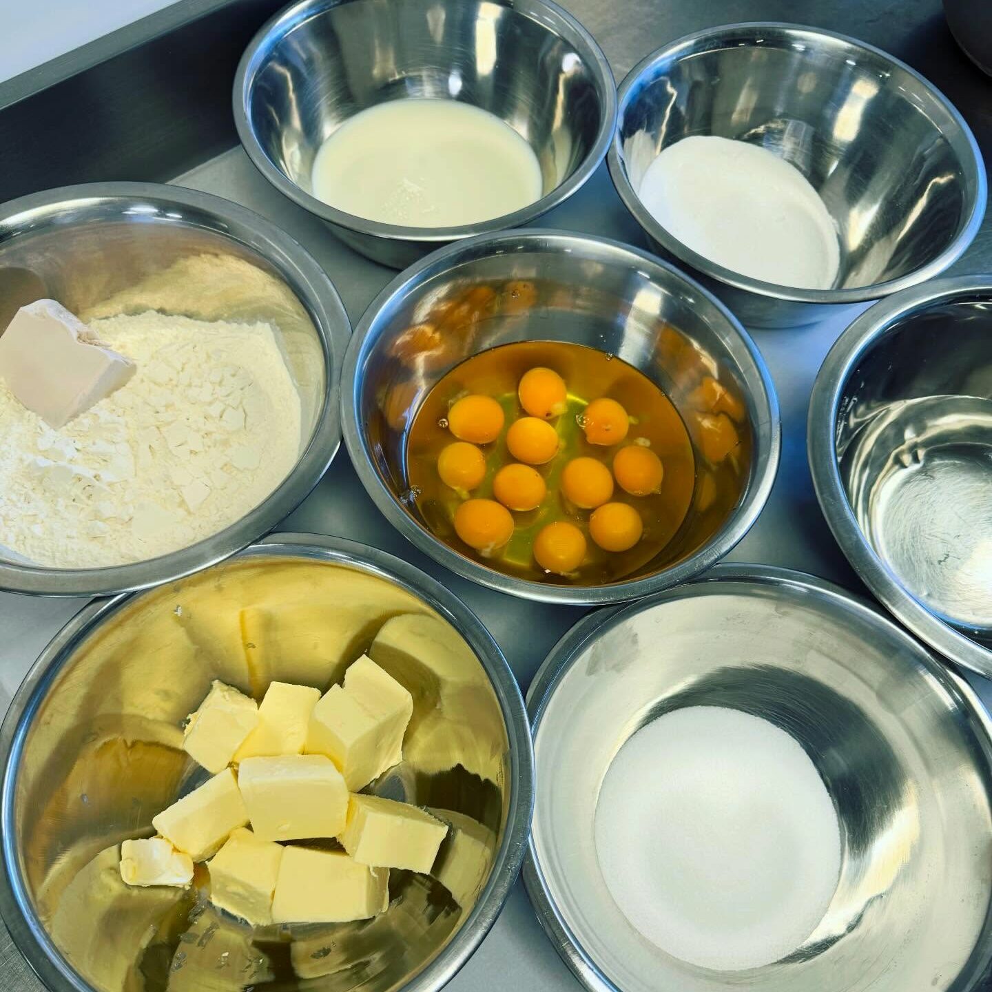 Des produits simples, une composition propre pour une signature artisanale : farine de blé Millésimée Ile de France, œufs, lait, beurre, sucre, sel, levure et eau.